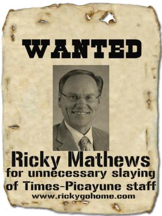“It’s not like he came in here and decided to do this. This wasn’t his decision,” a longtime Times-Picayune newsroom employee who lost his job in the cutbacks observed at the time, in an interview for Hell and High Water. “What’s that line from [the movie] ‘Apocalypse Now’? ‘You’re an errand boy, sent by grocery clerks, to collect a bill.’ That’s what Ricky Mathews is.”
