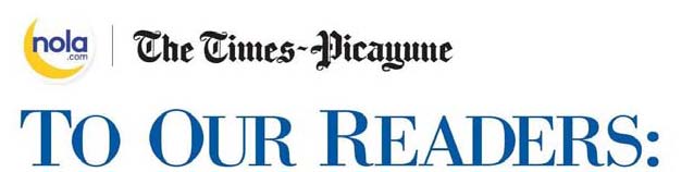 Despite NMG’s fierce focus for the past year-and-a-half on NOLA.com, Mathews’ commentary was not available on the website, but only via the printed newspaper and the e-edition. (A PDF of it, downloaded from the e-edition, can be accessed by clicking this link: ToOurReaders_RickyMathews2013Dec22.) (CLARIFICATION, 12/23/13: Although it didn’t appear on NOLA.com, Mathews’ letter can be found at NOLA Media Group’s corporate site at http://www.nolamediagroup.com/about/, and on page A14 of the newspaper’s Dec. 22 print edition.)
